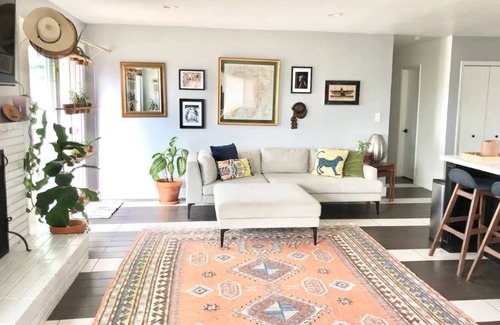 Nestled between San Diego and Temecula, our Fallbrook home puts you in reach of wine country, beachside towns, and big city attractions. Our mid-century modern home is located on a quiet cul-de-sac within walking distance of downtown Fallbrook. Take a look at the art gathered from our travels, soak in the pool enjoying views of Palomar Mountain, and explore the quaint shops of downtown Fallbrook.