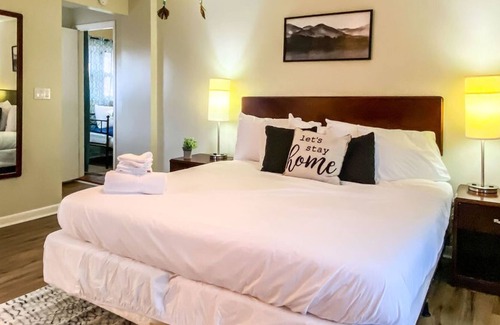 If you are looking for a cozy and relaxing home with fully updated amenities, look no further! Our cozy brick bungalow will have you feeling right "at home" from the moment you enter. Our living room has two futons that can be utilized for additional sleeping options if needed. The large 50" TV is complete with Roku, allowing guests to stream their favorite TV shows while relaxing. The fully stocked kitchen has everything you need to settle in and cook a meal. Guests have access to a washer and dryer off the kitchen as well. A small dining room with a table and chairs accomodating up to 4 connects the living room and the kitchen making entertaining or spending time with family a breeze.