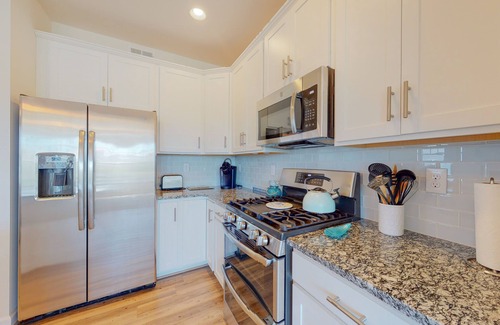 The muted colors and all-white walls will put you in a calm and cool state of mind (the central air conditioning also doesn't hurt!). Lots of beach equipment is provided for guest enjoyment, and you can wind down after a day at the beach on the living room's sectional sofa in front of a gas fireplace. There's also a sectional couch upstairs in the home's more casual second living room. The full kitchen features lots of kitchen equipment for guest use, as well as a prep island that doubles as a fun breakfast bar for casual meals. If you'd rather cook out, feel free to light up the private gas grill and enjoy a meal on the screened-in porch. Guests can also enjoy access to a shared pool, fitness center, and outdoor shower during their stay at this lovely home. We kindly ask our guests to note that our community does not permit commercial vehicles on the premises. We kindly request that guests have a personal vehicle rather than a commercial one during their stay. Thank you for your understanding!