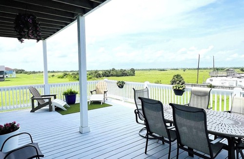 Located at Indian Beach in the West End of Galveston just a couple of blocks from the beach. This beautiful house is the perfect getaway in a quiet subdivision, with a playground in the backyard. Miracle of the Sea is the perfect place to let your hair down and kick your feet up. This home is family oriented and has many personal touches.