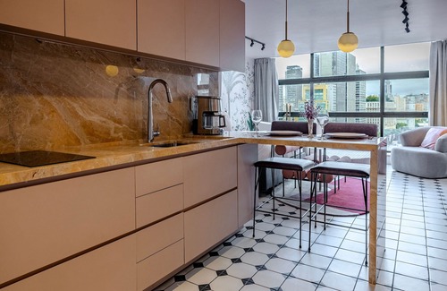 A welcoming and elegant space, ideal for relaxing after a day exploring the city or for an evening of entertainment with friends. The space has a full kitchen, prepare your meals in a kitchen equipped with high quality utensils and modern appliances, surrounded by an environment that exudes sophistication.