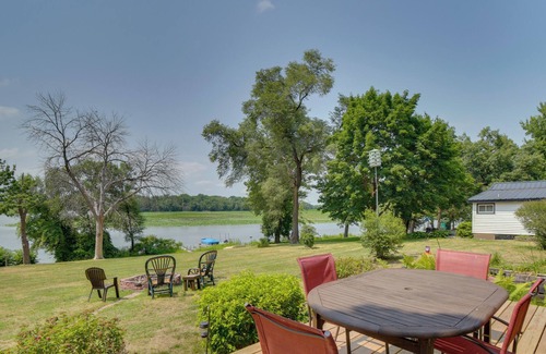 Located on the shores of the Mississippi River, this 3-bedroom, 2-bathroom Thomson home is the perfect spot for your next getaway with family or friends! The vacation rental has all the essentials for a stress-free stay, including a full kitchen, a game room, and an outdoor dining area. Launch your boat from the nearby boat ramp, cast your line from the backyard, or hit a hike in the Mississippi Palisades State Park. In the evening, relax under the stars and enjoy s’mores around the fire pit.