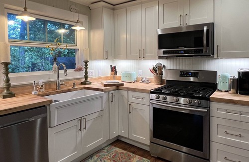 All linens are included, soft cozy linens on all beds, towels, wash clothes, shampoo, conditioner, and body wash dispensers in the showers. Bathrooms both have blowdryers and starters of toilet paper. Kitchen is fully equipped with pots & pan, kuerig coffee machine (coffee bar with pods, assorted creamers, and sugar), baking dishes, silverware, glasses, cups, and place settings for 6.