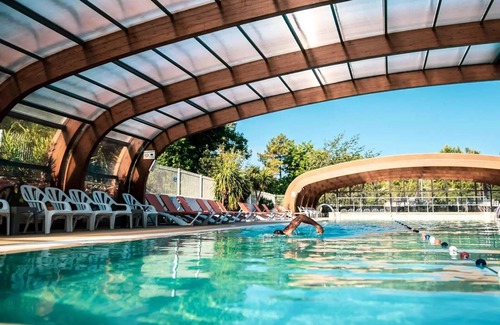In the heart of the campsite, a fenced area of 2600 m2 dedicated to the pleasures of water.Two large ponds for swimming enthusiasts, jacuzzi for relaxation, paddling pool, aqua-ludic space for the smallest and 3 slides for some sensations...This water park includes: - a large main basin - a paddling pool with water for the little ones - a specific basin for the three slides - a solarium with sunbeds and umbrellasCamping des Embruns offers activities and entertainment throughout your stay: - Seasonal activities between July 1 and August 30 - Dance evenings, karaoke and shows - For athletes: Fitness and aquagym every morning from Sunday to Friday. - Volley, football, ping pong every day from 5pm - Organization of three petanque competitions per weekFor the children: one-off support by an animator who will make them discover the fauna and flora of the Arcachon Basin, will welcome them in creative workshops, will introduce them to the dance and the joys of the show.