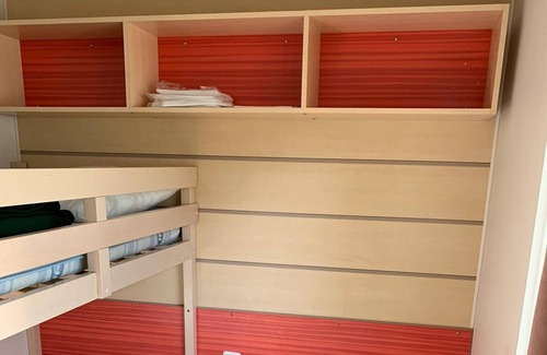 2 bedrooms, 1 with 1 double bed, the other with 1 single bed and 2 bunk beds.