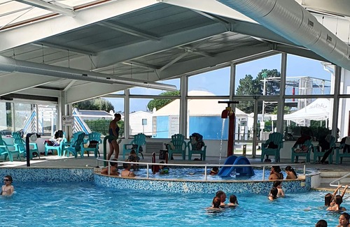 The highlight of this accommodation is its shared outdoor area with 3 outdoor heated pools, 1 indoor heated pool, a whirlpool, a garden, and a children's waterpark with waterslides (open from 10 am to 12 pm and from 2 pm to 6 pm), and an outdoor shower.