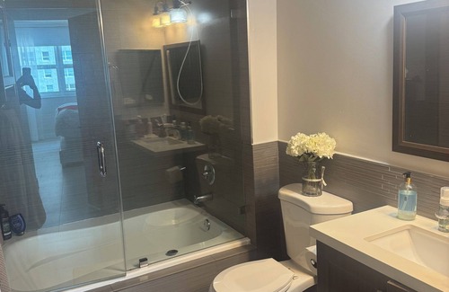 Your home away from home in Miami with 1 bedroom. This delightful apartment is centrally located with just steps to Brickell City Center, restaurants, cafes, nightlife and has a stunning sea view. Features a cozy king bed, 2 bathrooms with a bathtub and shower, and convenient amenities like AC, WiFi, and a washing machine. Guests can also enjoy the balcony, a fully equipped kitchen, and access to a fitness room, pool, hot tub during their stay. We hope you'll enjoy your stay at our apartment. 30 days or more requested.