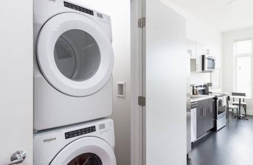 Fitness center, rooftop patio and lounge, in-unit laundry, and smart TV with Chromecast