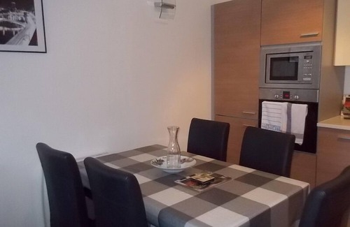 You enter into a marbled floor 'T' shaped entrance way which, with its 2.6 metre (8.5 feet) ceilings, feels very spacious. All rooms are accessed via this entryway. There are 2 good size bedrooms. The master bedroom has an extremely comfortable USA king size bed with ample wardrobe and drawer space. It also has its own patio. The master bathroom (en suite) is quite large with a shower, toilet and wash basin. The second bedroom (quite large for a European second bedroom) has two large very comfortable single beds and ample wardrobe space. Upon request, these beds can be locked together and, with a topper, provide a second USA king size bed. There is a 35 Euro charge for this. The bedroom has access to a second patio. The second bathroom has a bathtub/shower combination and is also quite spacious. The living room has a 32” LED flat screen TV, a Blu-ray DVD player and a stereo system. A comfortable sofa and an additional chair provides seating for 4 people. There is access to the second patio. The dining area, with its leather chairs, accommodates 5 people. The kitchen is fully equipped to serve 6 people. It is a 'Bosch' kitchen with an electric oven, stove top and microwave oven. There is a powerful extraction fan over the stove top. The large frost free refrigerator and the dishwasher are 'built in'. There is a separate laundry room with a Miele washer and Meile dryer.