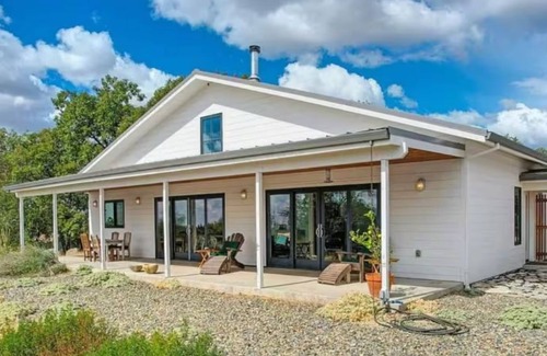 Stunning modern main house with 2 spacious bedrooms on 25 private acres in Amador County. Open-concept design with clean lines & panoramic hill views through expansive windows. Perfect for couples, families, or small groups seeking luxury retreat experience. Dogs welcome to roam freely across fenced property. Contemporary architecture meets natural beauty. Ideal for romantic getaways, family escapes, or a peaceful wine country retreat. Two hours from ski resorts Bear Valley and Dodge Ridge.