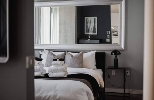 Experience modern-industrial charm at La Cité, a 2-bedroom, 2-bathroom retreat for 4 guests in the heart of Montreal's Old Port. With aesthetic features throughout, a fully equipped kitchen, great amenities, and high-speed internet, it's perfect for urban explorers seeking comfort and style. Enjoy easy access to Montreal's vibrant culture and attractions from this stylish sanctuary.