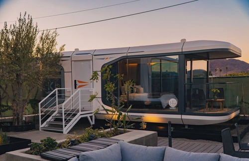 Get ready to relax in this delightful 3-Smart Home estate in Valle de Guadalupe. This lovely property features an exterior living room, dining table, firepit and waterfall. We have 1 king bed and 2 queen beds, perfect for a group getaway. Each Smart Home has electric curtains and sun roof to admire the stars, and sunset. With 3 full bathrooms and 2 exterior toilets, equipped with amenities like a bidet and hair dryer, guests will feel pampered during their stay. Enjoy the convenience of WiFi, heating, and AC. Feel free to reach out to us during your stay - we're happy to suggest local spots to check out. This property is also availabe for events in the outdoor area.