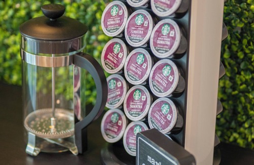 • Fully Equipped Kitchen: Whip up delicious meals in the stylish kitchen, complete with high-end appliances and a cozy dining area. Additionally find a coffee bar that it stocked with complimentary K-Cups and Creamer.