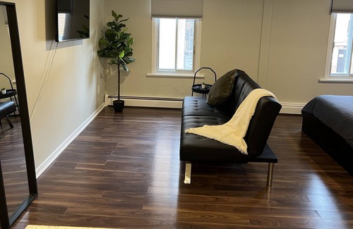 Be the first to come and stay at our freshly updated bachelor apartment conveniently located steps away from a variety of bars and restaurants! Forget about taking an Uber or a taxi and enjoy the convenience of proximity!