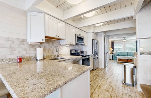 This four-bedroom home is a great beach getaway for a large family! You'll love this oceanfront townhome located directly on the beach. There is a beach-level deck off the living room and balconies off three of the bedrooms. You'll also have lots of in-suite amenities that include central air conditioning, a private washer/dryer, a full kitchen with a dishwasher, and a mounted flatscreen TV.