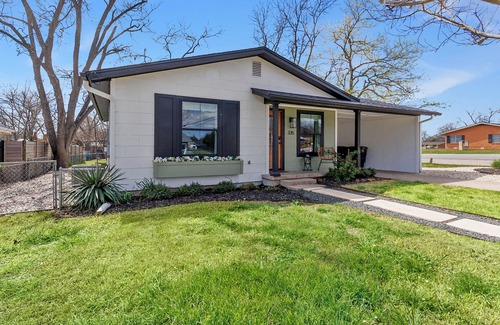 Pristinely maintained and less than 1 mile from the shops, art galleries and restaurants of Main Street, our modern 2BR/2BA bungalow has all the conveniences and amenities you need for a comfortable stay. Bright, airy spaces, a fully equipped kitchen and tastefully decorated rooms await you, including a hot tub, BBQ grill, and a fire pit in the backyard (a favorite hangout spot for guests)! Indoor and outdoor games are also available for you to enjoy. This home can comfortably sleep 4.