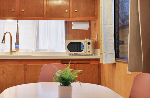 Welcome to the 2 bedroom and 1 bathroom Olive Cabin. We know you will love the retro design and modern decor in this space.