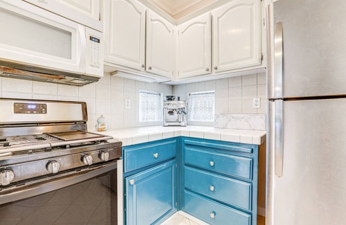 KITCHEN: Stainless steel appliances w/ dishwasher, cooking basics, dishware/flatware, microwave, Breville espresso maker, Chemex coffee maker, basic small coffee maker, slow cooker, toaster, Kitchen Aid stand mixer, hand mixer, popcorn maker, cotton candy maker