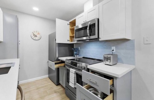 Kitchen: Fully stocked - cookware, dishes/silverware, toaster, blender, brand-new full-size appliances for cooking, coffee maker (French press) and each stay comes with complimentary coffee, cream and sugar.