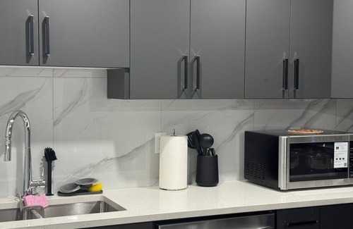 Enjoy a stylish private suite with a cozy living area, smart TV, full kitchen, and dedicated workspace with high-speed Wi-Fi. Unwind in the peaceful bedroom after a busy day. Whether you're here for work or leisure, you'll love the comfort, convenience, and easy access to shops, cafes, and public transport. Perfect for business travelers or explorers alike. Your ideal stay starts here—book now!