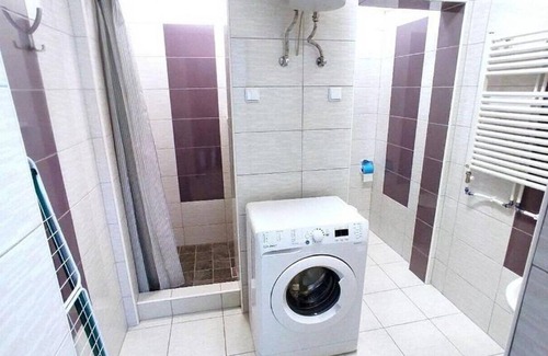 This modern 32 m² studio apartment is a perfect choice for a couple or two guests looking for a comfortable and practical place to stay. The apartment is well-equipped with free Wi-Fi, a flat-screen cable TV, a fully fitted kitchen (including a microwave and refrigerator), a bathroom with a shower, as well as access to a washing machine and a drying rack.