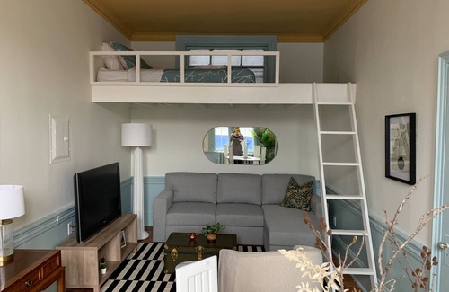 Embrace the elegance of our Halifax Victorian home, designed for both style and comfort. Offering a loft bed, a versatile pullout couch, and contemporary amenities to enhance your stay, this space is meticulously designed for relaxation and convenience. Just moments from the vibrant downtown, it's your ideal base. Dive into the local scene with ease. Shared laundry, no AC. A prime spot for a unique and cozy stay in Halifax.