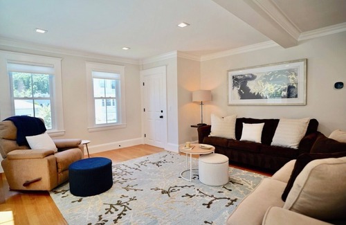 Nestled near downtown Manchester-by-the-Sea, this charming two-bedroom, one-and-a-half bath is bright and modern allowing you space to unwind in style. Enjoy leisurely mornings sipping coffee on the outdoor patio, which is surrounded by trees for some natural privacy. Inside the home is classic New England with hardwood floors, a neutral calming color palette, and colonial details, and guests will find everything they need for a meal or two if they decide to dine in.