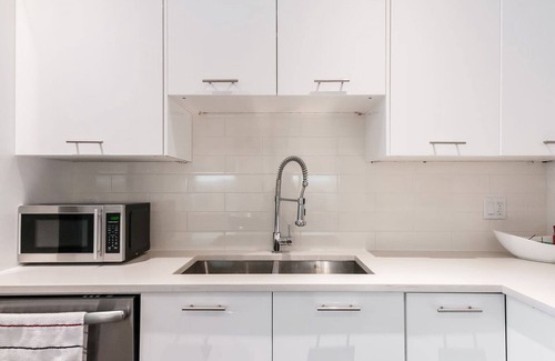 Our elegant condo is modern and spacious, located on Parc Avenue in the trendy Mile End area of Montreal. This modern condo is located on the first floor and has an outdoor balcony. This space can comfortably sleep up to 9 guests, in 3 bedrooms, 1 full bathroom, and 1 powder room. The master bedroom consists of a king sized bed (two single sized beds placed together). Guests have the option of configuring the master bedroom as a king sized bed, or as two single sized beds. The second bedroom consists of a double bed. The third bedroom consists of a bunk bed with a full-sized dresser. All of our beds are dressed with fresh quality cotton sheets and luxurious duvets. Guests will also enjoy a full-sized luxurious bathroom stocked with fresh towels. The space is equipped with premium kitchen and laundry appliances. The living room and fully equipped kitchen are open concept and include a 65" Smart TV (without cable), Netflix, and free WIFI.