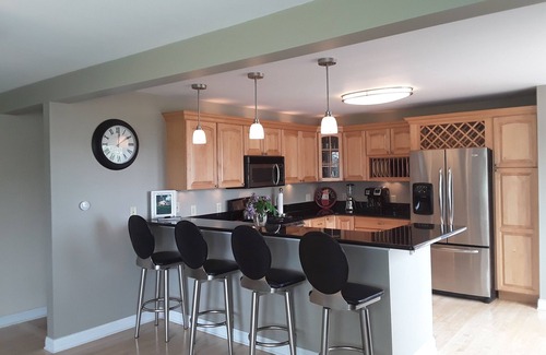 This home has a well appointed modern kitchen and large deck for entertaining. 3 bedroom ranch sleeps 6 people comfortably with one room with 2 twin beds, 2 rooms with very comfortable queen size beds, one being a tempurpedic. Large 50 " flat screen frame TV in family area and other room has a 32" smart TV for the bedroom. Enjoy the spacious deck, outside fire pit and large lawn area. The home has one bathroom and laundry in the basement. Kitchen has granite counters.