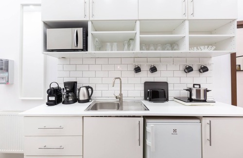 Enjoy the free breakfast of toast, cheese, butter and jam, milk, coffee, tea and cereal. Our kitchen is fully equipped (dishwasher, mini oven, electric kettle, toaster, coffee machine, fridge, cooking panel, pans, cutlery, etc.)