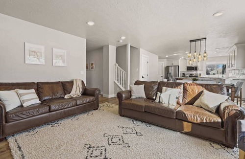 Welcome to your home away from home! This modern farmhouse-style retreat is nestled in a safe, family-friendly neighborhood, conveniently located across from an elementary school and backing up to the community playground. With 5 bedrooms, 2.5 bathrooms, and spacious living areas, this home is perfect for families, groups, and travelers of all ages.
