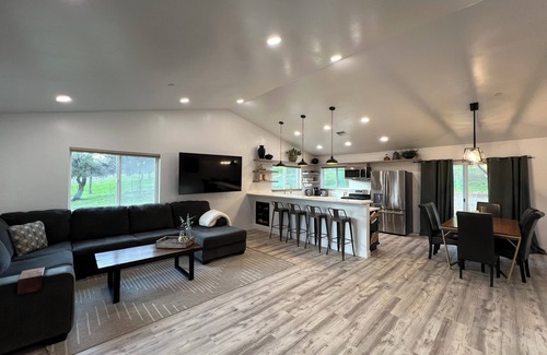 Escape to our brand-new custom-built home nestled on a charming family farm, perfectly positioned as your basecamp for exploring Northern California's treasures. This spacious 3-bedroom, 2-bathroom haven combines modern comfort with rural charm, offering an authentic farm experience just minutes from countless attractions.