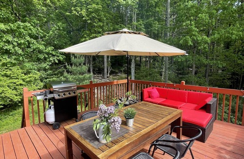Cuddle up with a blanket and hot drink , watching the fire place. Choose one of many trails for hiking through the woods to mountain tops and waterfalls. Go skiing or experience archery. Visit nearby farms and unique antique shops. Try local restaurants or pick a bottle of wine for the evening barbecue.