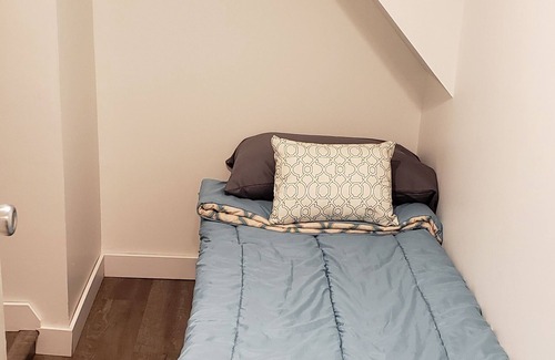 One small adult may sleep on the couch, if needed.