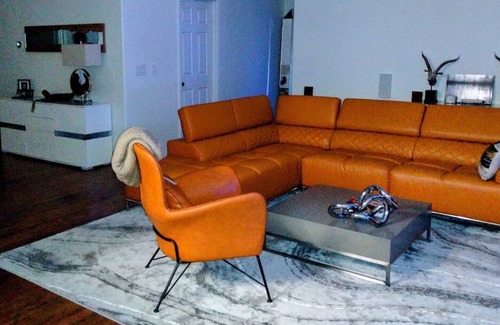 Modern Styled newly renovated one level ranch home is perfect for group trips NO PARTIES the police will be called if your planning parties or romantic Redrock getaways located 12 miles to lower lot park from driveway. 2 bedrooms with Cali king and queen size beds, satin sheets and down comforters for each, plenty of extra bedding available. Office with desk printer and including a round flip-out sofa bed apx little smaller length wise to a queen size mattress, that could be considered a 3rd bedroom. House is equip with other available sleeping accommodations in the sitting room which has a large comfy white couch and love sac, which is basically a huge oversized and stuffed round bean bag but containing temperpedic stuffing, also blow up mattress available & two full bathrooms, one with a jetted tub the other is a large tub both with showers also. New contemporary furniture in living room with built in wall speakers, leather couch and concrete table. Dinnett with four person high top table and chairs and 3 barstools surrounding kitchen. Kitchen is equipped with new LG stainless appliances including two ovens and fully stocked with air fryer, kuregi coffee maker and k- cups, grinder, pots, pans mixing bowls, Tupperware, crystal stemware,steak knifes. Laundry room and detergent Gas Grill on back patio. Driveway or 1 car garage parking, safe highly desired neighborhood. Surrounded by all amenities: food, movies, mall, highway & mountain access , workout facilities & groceries within a mile. Basement is locked and not accessible it's unfinished and used as storage.
