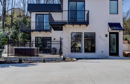 Experience Modern living in McMinnville like a local in this 3-bedroom house. The superbly decorated bedrooms offer 1 king bed and 2 queen beds for a tranquil night's sleep. With 2.5 bathrooms . The living room features a cozy sofa bed with a custom modern accent fireplace and large custom windows —along with a powder room for you and your guests. A beautiful balcony with a river view. The side of the home has a beautiful private courtyard for entertainment with a hot tub for 4. Experience the magic of McMinnville at our charming house. This home is seconds from a vibrant restaurant, with live entertainment and summer fun kayaking. Main street (3mins) Fall Creek Falls State Park 41 mins, Cumberland Caverns 12 mins, Rock Island State Park 19 mins, Isha 22 mins, Pioneer Lanes bowling 6 mins, Hot Wheels Skating 4 mins, Three star cinema 5 mins, Detentions (arcade, bounce house, golf simulators.) 19 mins. Center Hill Lake 43 mins, (46 miles of a beautiful lake.)