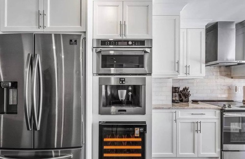 Kitchen: The fully equipped kitchen is a chef's dream, featuring modern appliances, countertops, and all the cookware and utensils you need to prepare delicious meals. Enjoy your culinary creations at the elegant dining table or take your meal outside to the patio.