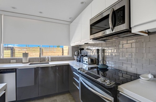 This cozy pad is the perfect blend of new modern amenities including flatscreen tv in living room, BBQ, totally updated kitchen with gorgeous quartz countertops, a large island with bar seating, and stainless steel appliances...and did we mention the amazing views?