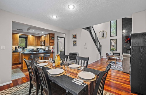 This home has a fully stocked kitchen with everything you need to cook meals! and enjoy time together. The open floor plan makes this a great home for groups, with the dining table, which comfortably seats 6, right next to the kitchen. A coffee station with K-Cups is provided as well.