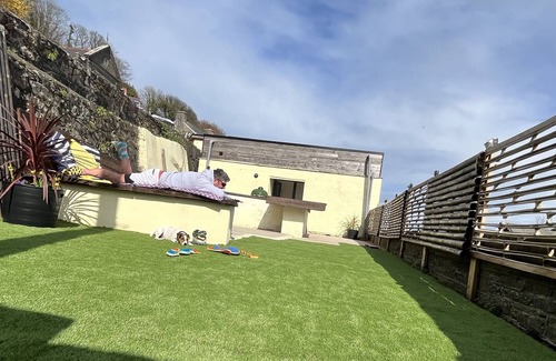 This modern home is family and pet friendly. Ideal as a relaxed base to explore and enjoy the stunningly beautiful Pembrokeshire coast and beaches. Whatever the weather throws at you - The RoundHouse has bright modern facilities to entertain all our guests- in good weather make use of our private use patio terrace garden with outdoor kitchen area or relax on the glass fronted balcony overlooking Fishguard bay - On days when the weather is not quite good enough for outdoor relaxation , make use of the spacious open plan family rooms overlooking the sea with books and games for the whole family.