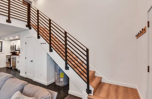 Enjoy a stylish experience at this centrally-located one bedroom apartment. Covered parking, washer/dryer in unit, spacious living, private outdoor patio, and completely brand new! Walk to all that downtown Augusta has to offer, close walking distance to parks and the grocery store. King sized bed and a comfy couch. Bring an air mattress for extra guests.