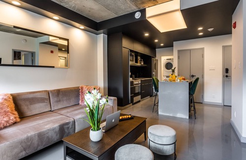 Stay in comfort at The Pierce Hotel, a 650 sq ft suite in downtown Montreal. Unwind in a plush king-size bed with a memory foam mattress, stream your favorites on two Smart TVs, and cook with ease in the fully equipped kitchen, complete with a central island and a Nespresso machine. The bathroom offers a spacious shower, and in-unit laundry adds convenience. Surrounded by vibrant restaurants, shops, and cultural hotspots, it's the perfect city retreat.