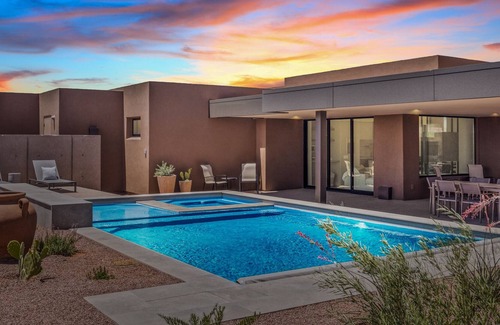 Nestled into the sandstone landscape of Kayenta, the Desert House is a perfect hideaway for some intense cactus-culture. Sun, sky, cactus, open space, and a cool drink poolside is the vibe of this stylish yet laidback environment. Impeccably designed and built, this home features a spacious open-concept