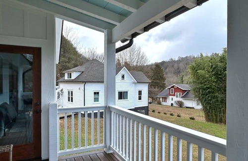 Enjoy a peaceful downtown experience at this centrally-located place in Bryson City! A modern build with historic touches next door to our historic Bryson City Farmhouse. Every inch of the house is custom designed and filled with amenities to make your stay perfect. Two parking spaces are available. The entire project is featured in a series by the Perkins Builder Brothers. EV Charger in parking area.