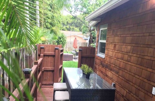 Spectacular Modern Cottage in Northwood Historic District. Renovated with modern design for a Zen experience. Beautiful white and neutral tone decor for a peaceful stay. The outdoor deck is perfect for entertaining, casual dinners and/or gatherings. We have a working fireplace, Smart TV, wireless internet access and more. Perfectly located within intracoastal waterway block, minutes to downtown WPB and Clematis street, City Place, Northwood, the Palm Beach Outlets, Peanut Island and much more!