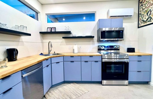 Escape in our newly constructed studio homes, completed in 2024, nestled in a prime central Tucson location just minutes away from the best restaurants, shopping, and downtown attractions. Enjoy the privacy of your own separate unit with a fully stocked interior and a tranquil backyard. Feel secure with our gated entry and advanced security features. Immerse yourself in the breathtaking beauty of the desert landscape while experiencing the ultimate in comfort and convenience.