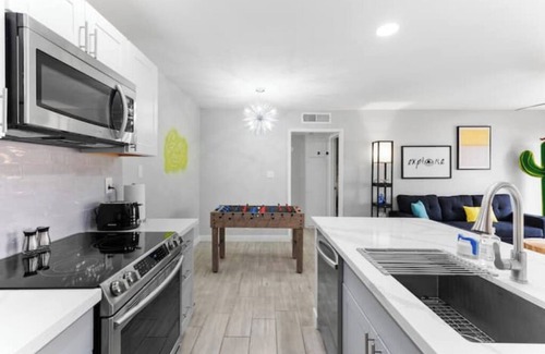 Enjoy This beautifully remodeled 1-level apartment is just minutes walk to ASU Campus! Enjoy a plethora of unique shops and bars near ASU while staying in style just 9 minutes from Sky Harbor International Airport. Catch a Spring Training game in Tempe Diablo Stadium, Sloan Park or Old Town Scottsdale (15 minutes away). Grab a drink on legendary Mill Avenue and explore the night scene. 6-minute drive to Tempe St Luke's Hospital - Healthcare workers welcome!