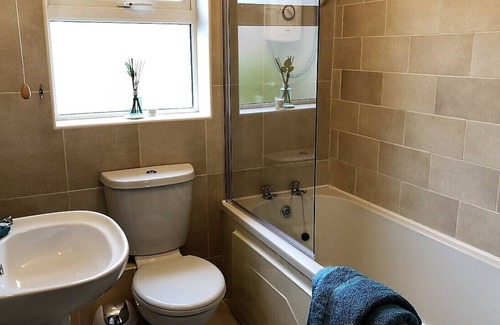 This bright apartment is well located to explore Bangor and the surrounding areas. It is close to all town amenities including the Aurora Leisure Centre and Bangor train station. The apartment is on the second floor and can be accessed easily from the allocated parking bay by a wide staircase or by using the lift. There are two bedrooms one large double and a second with bunk beds which is ensuite. The kitchen is fully equipped with a fridge freezer, dishwasher, and microwave. The open plan living/dining room has a large comfortable settee, easy chair and dining table. A small starter pack will be provided for you on arrival. Shampoo, conditioner, shower gel and body lotion are also supplied along with general cleaning materials including washing up liquid, washing machine powder and dishwasher tablets.