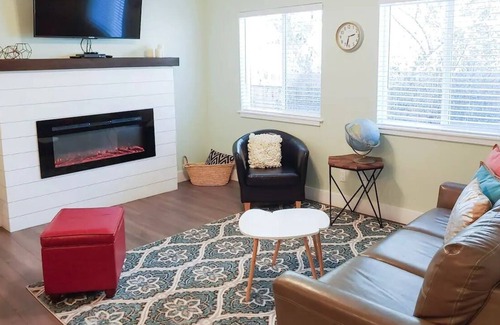 Just minutes walk to dining, shops, parks and trails! Inside are 9 ft ceilings, open concept, modern decor, and all the conveniences of home with added luxuries too! Newly renovated duplex in historic downtown Castle Rock. Kitchenette, 2 bedrooms with queen beds, fireplace, living room, and washer/dryer. A/C and heat, private parking and outdoor area. You can't beat this location!