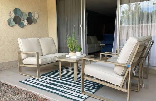 Enjoy a stylish stay at this centrally-located home in Old Town Scottsdale. It has been newly furnished and decorated with three principles in mind: style, quality and comfort. Upscale style from the original artwork to the tasteful wallpaper treatments, you will have an exciting and comfortable retreat during your visit to this fantastic city. All the thoughtful touches in this condo combined with the complex’s amenities and location will guarantee you will want to return again and again.